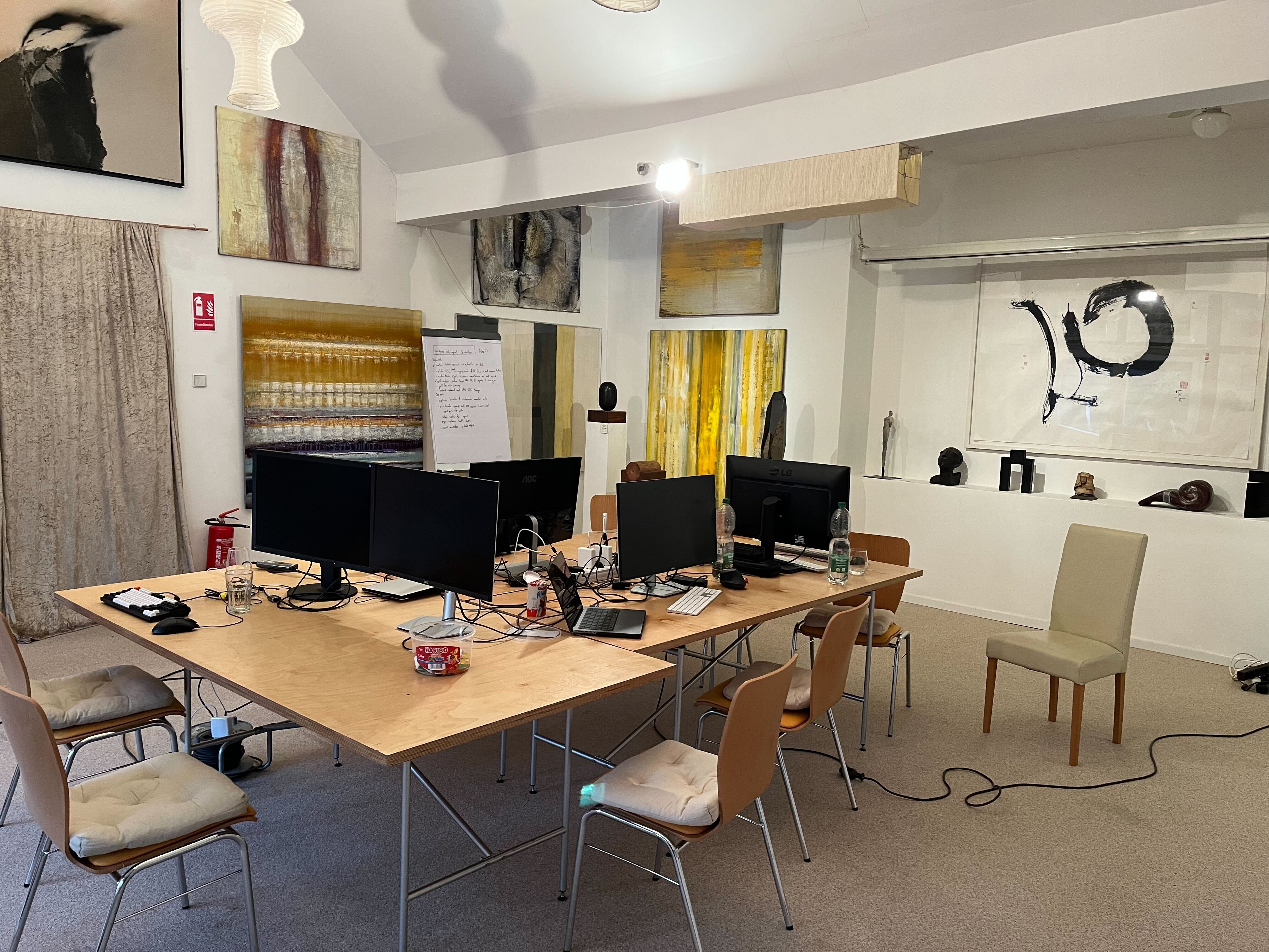 Although we split up into smaller teams for each topic, we regularly met to share our progress and findings or to chat. In the evenings we had some drinks and played some games together.